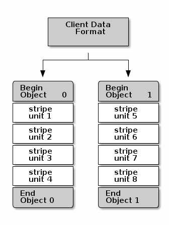 Stripe Count: The Ceph Client writes a sequence of stripe units over a series of objects determined by the stripe count. The series of objects is called an object set. After the Ceph Client writes to the last object in the object set, it returns to the first object in the object set.