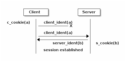 client will send first, server will reply with same. if this is a new session, the client and server can proceed to the message exchange.